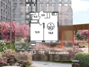 Общая площадь квартиры - 39,2 кв. м, этаж 17 из 19.