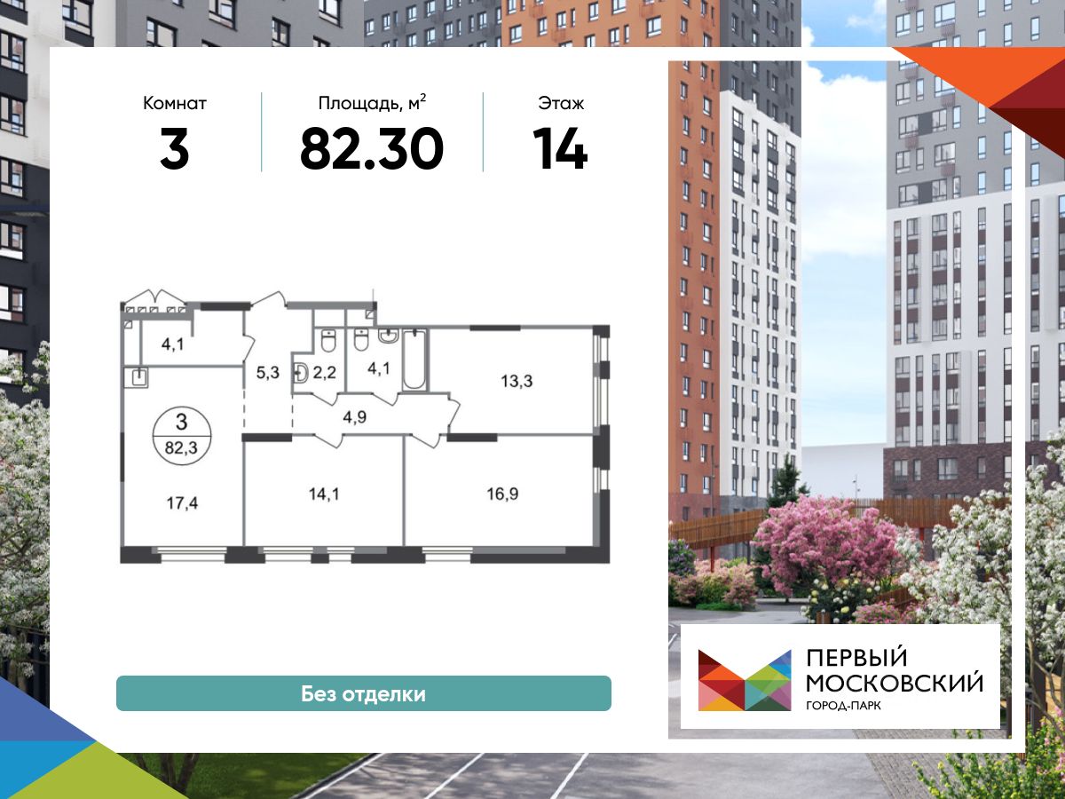 Общая площадь квартиры - 82,3 кв. м, этаж 14 из 19.