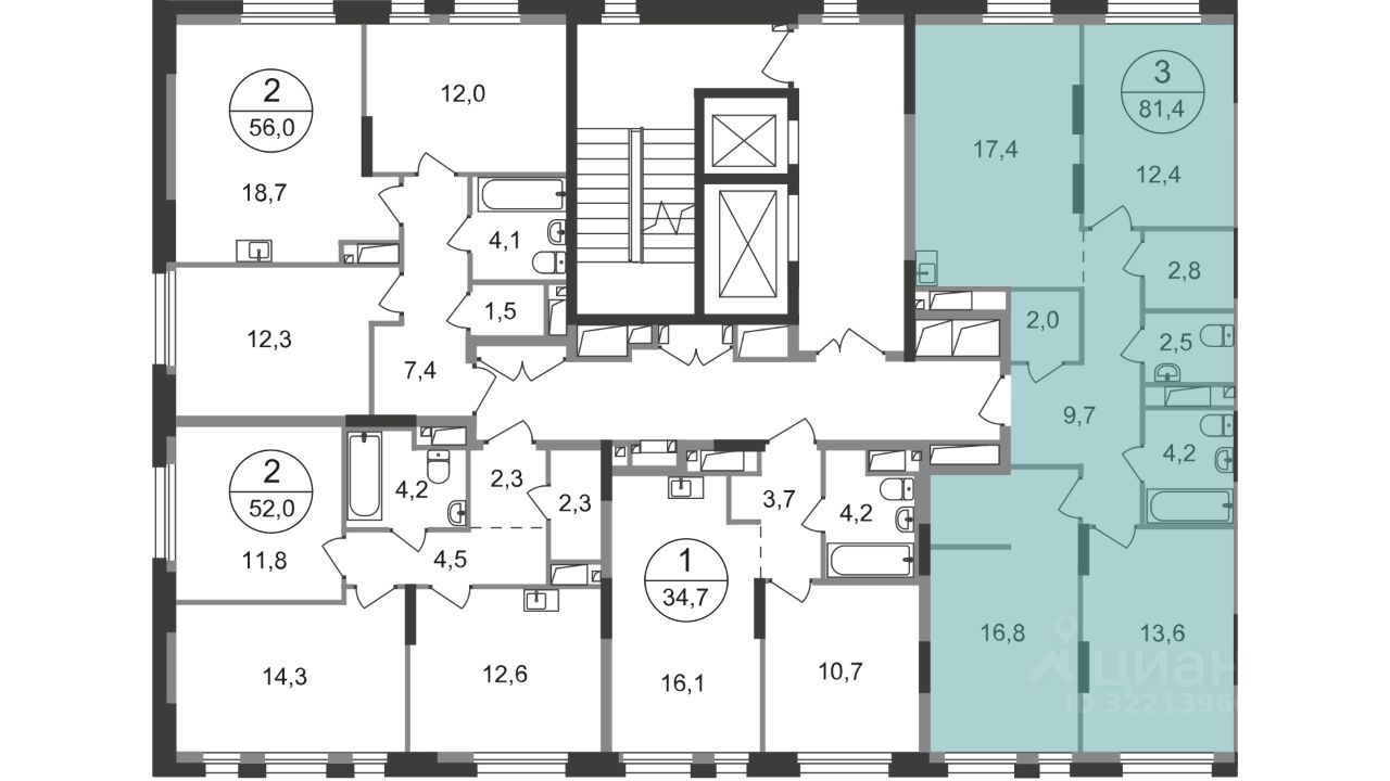 Общая площадь квартиры - 81,4 кв. м, этаж 10 из 19.