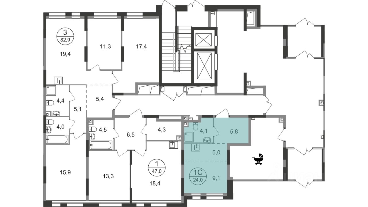 Общая площадь квартиры - 24 кв. м, этаж 1 из 19.