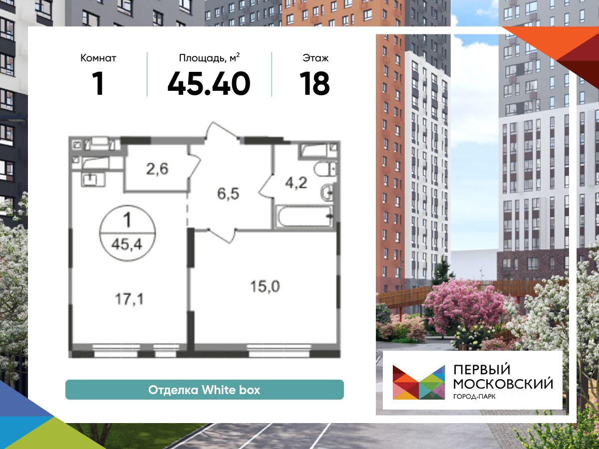 Общая площадь квартиры - 45,4 кв. м, этаж 18 из 19.