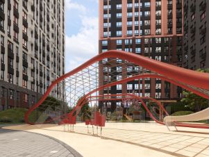 Входные группы выполнены по авторскому дизайну, оснащены системой "тёплый пол". В каждой входной группе будет располагаться комфортабельная зона ожидания. При входе предусмотрено помещение для хранения колясок и на -1 этаже располагается велопарковка.