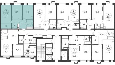 Общая площадь квартиры - 55,9 кв. м, этаж - 17 из 20.