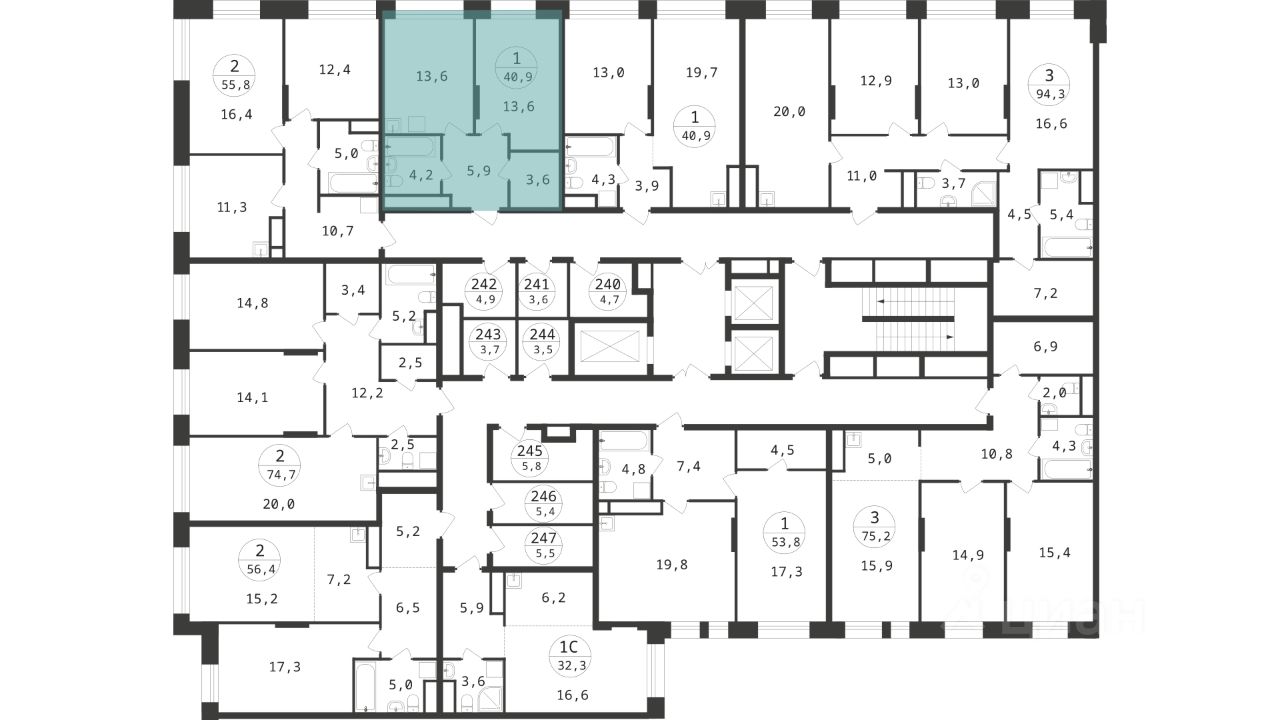 Общая площадь квартиры - 40,9 кв. м, этаж 18 из 22.
