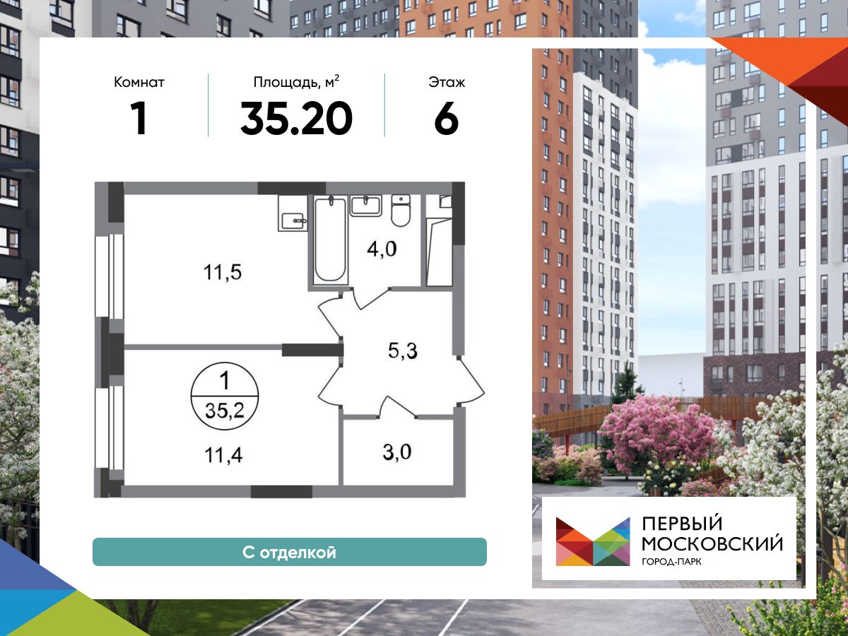 Общая площадь квартиры - 35,2 кв. м, этаж 6 из 20.
