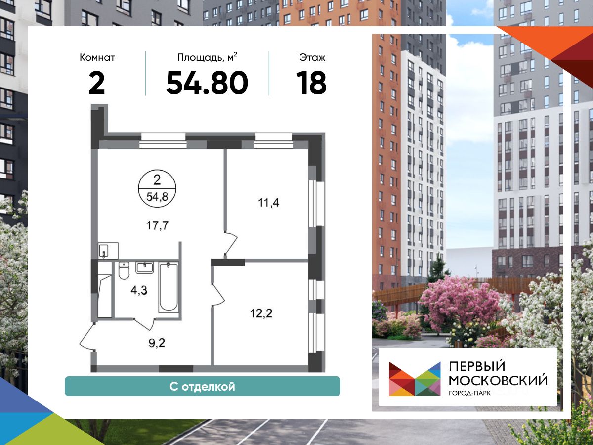 Общая площадь квартиры - 54,8 кв. м, этаж 18 из 20.