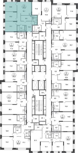 Общая площадь квартиры - 74,3 кв. м, этаж 19 из 20.