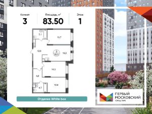 Общая площадь квартиры - 83,5 кв. м, этаж 1 из 20.