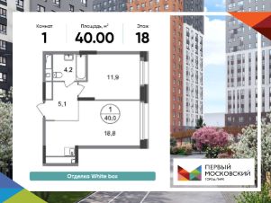Общая площадь квартиры - 40 кв. м, этаж 18 из 20.