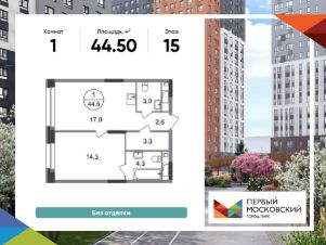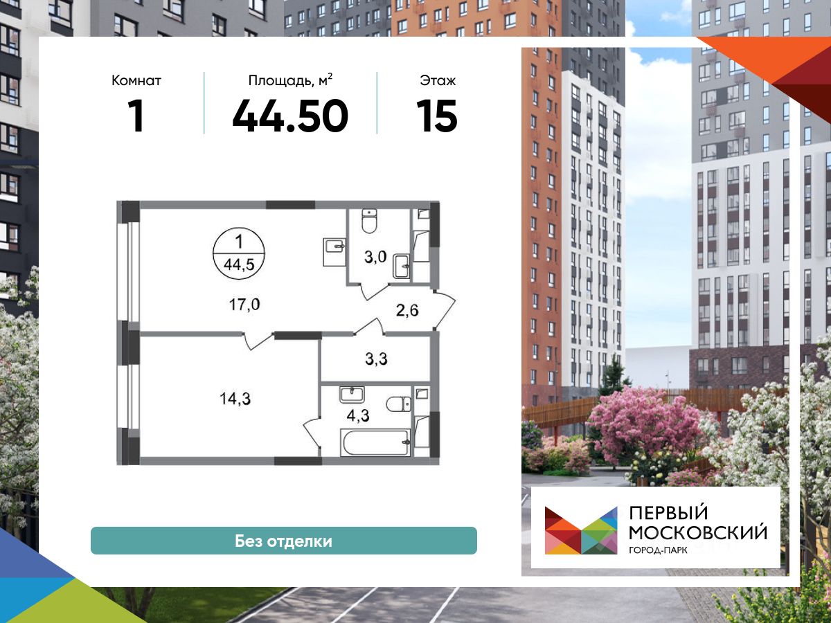 Общая площадь квартиры - 44,5 кв. м, этаж 15 из 20.