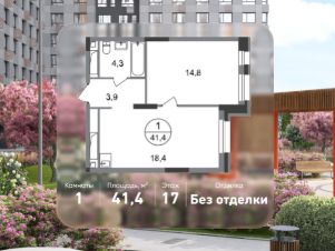 Общая площадь квартиры - 41,4 кв. м, этаж 17 из 20.
