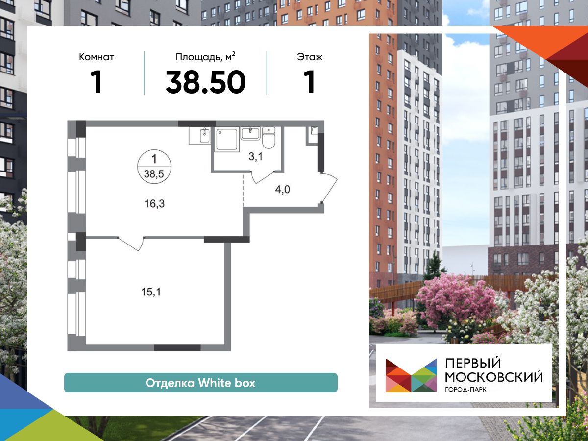 Общая площадь квартиры - 38,5 кв. м, этаж 1 из 19.