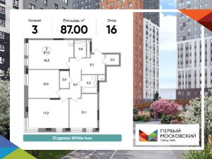 Общая площадь квартиры - 87 кв. м, этаж 16 из 19.