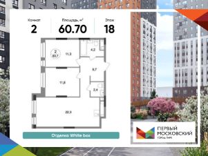 Общая площадь квартиры - 60,7 кв. м, этаж 18 из 19.