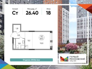 Общая площадь квартиры - 26,4 кв. м, этаж 18 из 19.