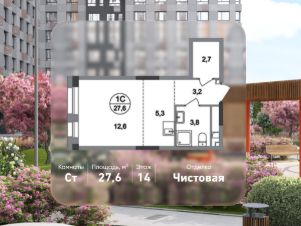Общая площадь квартиры - 27,6 кв. м, этаж 14 из 19.