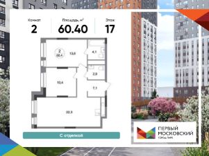Общая площадь квартиры - 60,4 кв. м, этаж 17 из 19.
