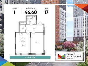 Общая площадь квартиры - 46,6 кв. м, этаж 17 из 19.