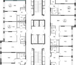 - в каждой секции корпуса - 4 лифта: 2 пассажирских, 2 грузовых