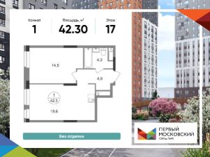 Общая площадь квартиры - 42,3 кв. м, этаж 17 из 19.