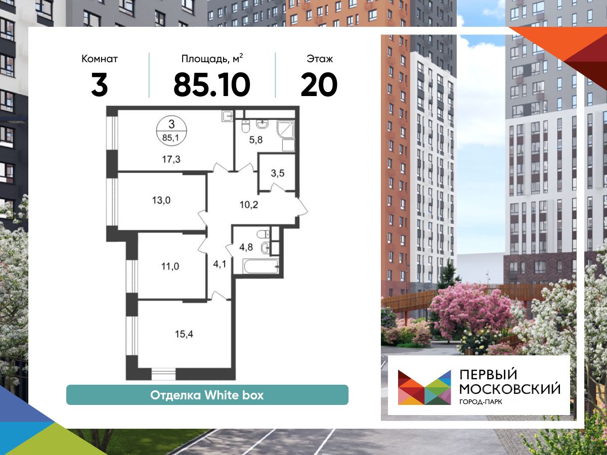 Общая площадь квартиры - 85,1 кв. м, этаж - 20 из 22.