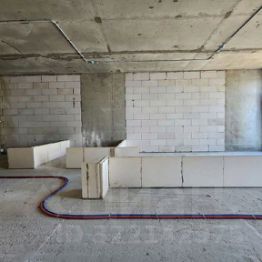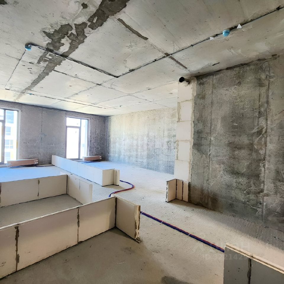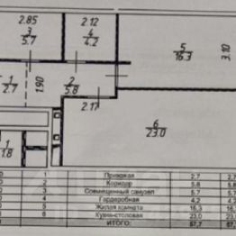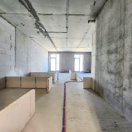 Квартира без отделки с интересным планировочным решением: просторная кухня-гостиная (23 кв м), жилая комната (16,3), гардеробная (4,2), с/узел (5.7), коридор (5,8), прихожая (2,7), окна в квартире в пол.