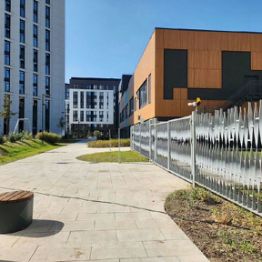 Для удобства жильцов предусмотрены подземная и гостевая парковки, а внутренняя территория комплекса свободна от машин. Благоустроенный двор с детскими и спортивными площадками и дизайнерский подъезд с панорамными окнами создают приятную атмосферу для жизни.