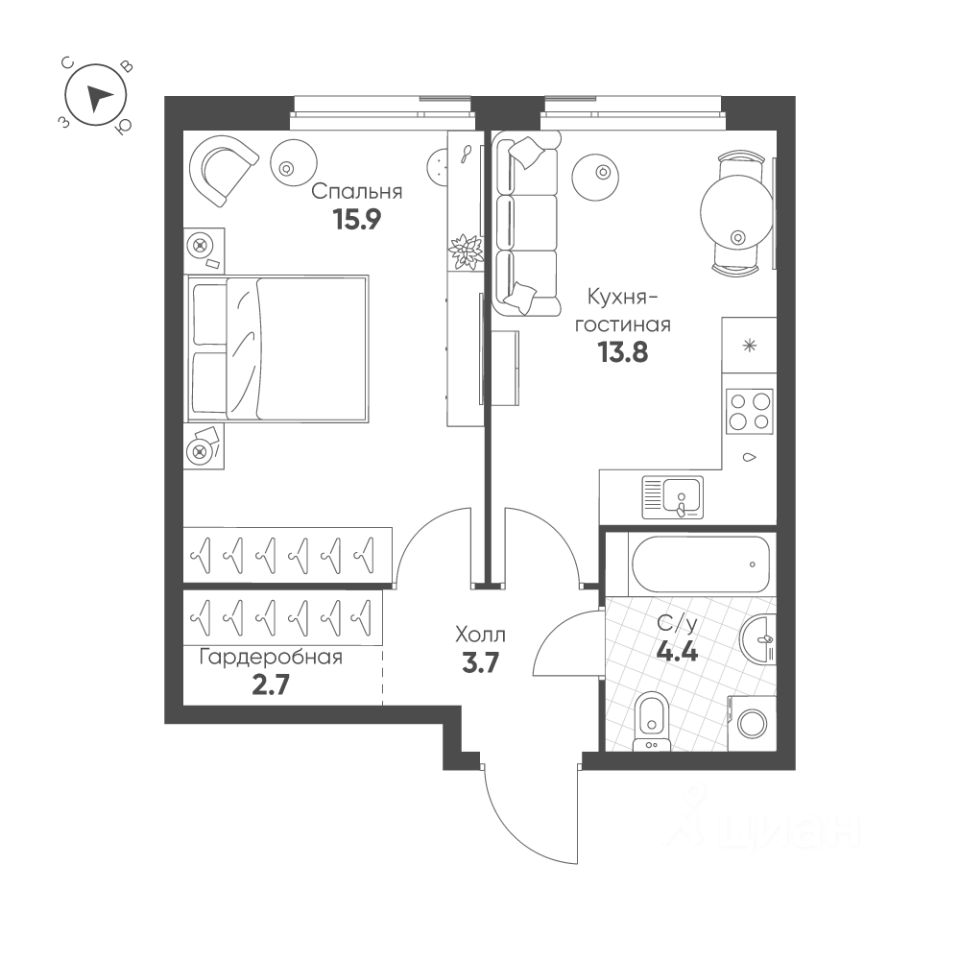 Продается 1-к квартира без отделки в ЖК "Shagal".