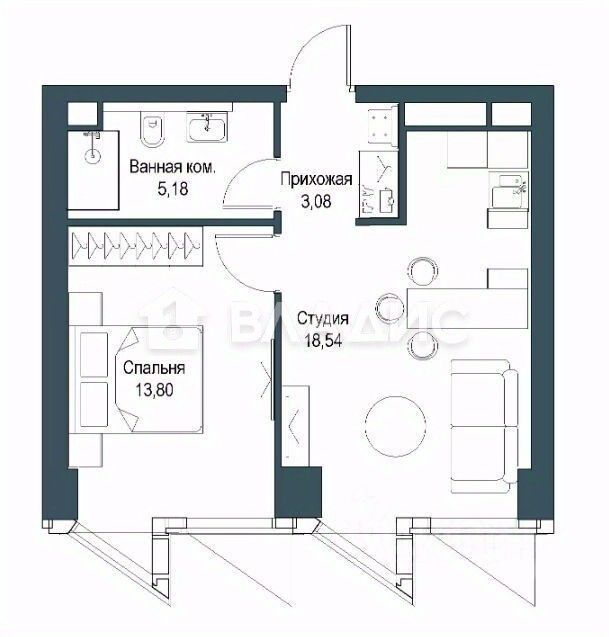 Общая площадь квартиры — 40,9 кв. м. Жилая площадь — 13,8 кв. м, площадь кухни — 5 кв. м. Высокие потолки 3,1 м создают ощущение простора. Квартира с изолированными комнатами и окнами на улицу.