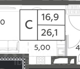 Однокомнатная квартира на 22-м этаже 56-этажного дома, площадью 26,1кв.м. Состоит из просторной гостиной-кухни площадью 21,8 кв.м. с огромным панорамным окном в пол (с возможностью проветривания) и объединённой ванной комнаты площадью 4,3 кв.м. Высота потолков 3,1м. Вид из окна: Матвеевский лес, Район Очаково-Матвеевский.