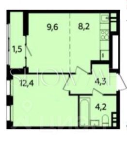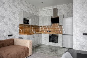 Конфигурация квартиры: спальня (12,4 м2), кухня-гостиная (17,8 м2), совмещенный с/у, балкон
