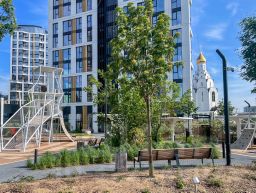 Рядом с комплексом обустроены: шикарная набережная, экопарк и центральный прогулочный бульвар. В районе уже сформирован грандиозный спортивный кластер с более чем 30 видами активностей.