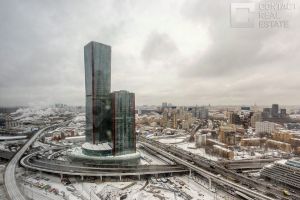 Благодаря большим окнам и 3-метровым потолкам, пространство наполнено приятным и равномерным естественным светом. Квартира находится на 35 этаже. Из окон открываются захватывающие панорамные виды на город: из кухни — вид на реку, из спальни — на небоскребы "Москва-Сити".