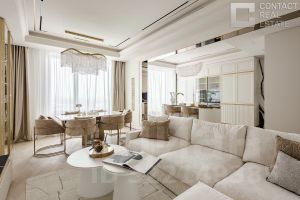 В квартире выполнена абсолютно новая дизайнерская отделка в стиле современной классики. Все материалы отделки и мебели подобраны с особым вниманием к деталям и качеству, что делает этот интерьер по-настоящему эксклюзивным и дорогостоящим.
