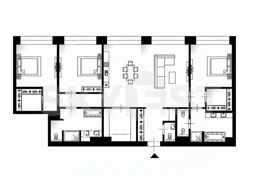 Планировка: кухня-гостиная, 3 спальни, ванная, гостевой санузел, постирочная, холл.