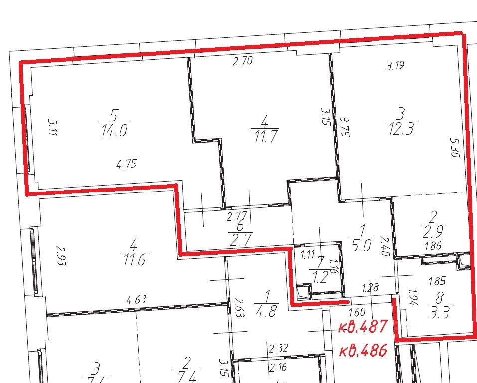 Евро 3. Комнаты 14+11,7 м.кв. Кухня-гостинная 15,2 м.кв..