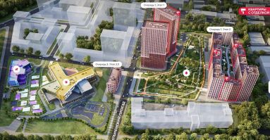 Благоустроенный сквер 1,5 гектара, велосипедные парковки и дорожки, а также спортивные площадки с тренажерами и детскими площадками. На территории сквера будет действовать бесплатный Wi-Fi, а в одной из локаций установят станцию зарядки телефонов.