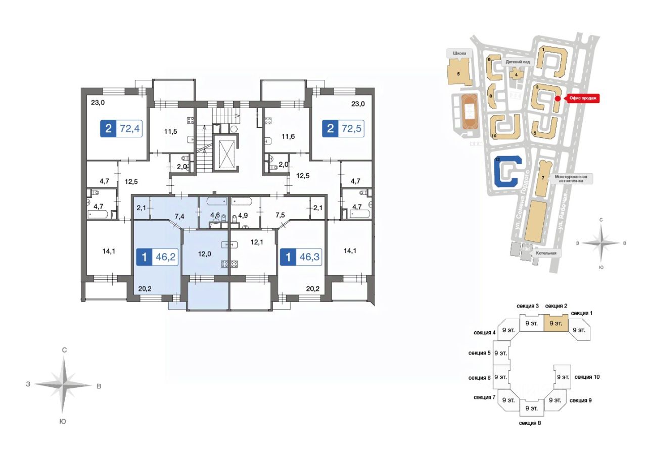 Продаётся 1-комнатная квартира в сданном доме (Семёна Гордого, 12), срок сдачи: IV-кв. 2018, общей площадью 46.3 кв.м., на 2 этаже. Расположение, транспортная доступность