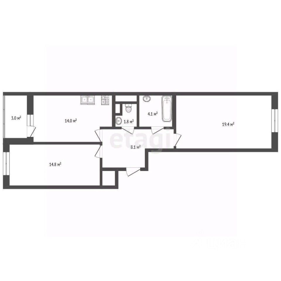 Простор и комфорт: Умная планировка с жилой площадью 35 м² и большой кухней 14 м² — идеально для семьи. Раздельный санузел и уютная лоджия добавляют комфорта.
