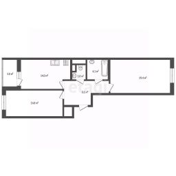 Площадь: общая 65 м², жилая 35 м², кухня 14 м².