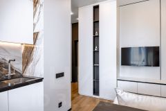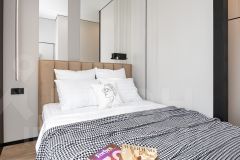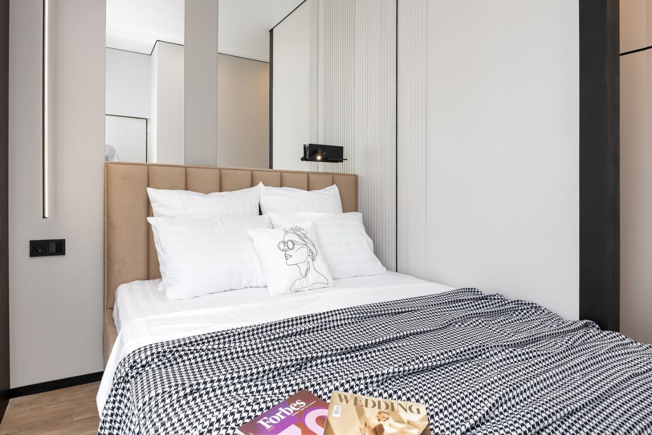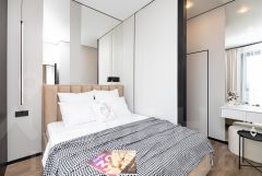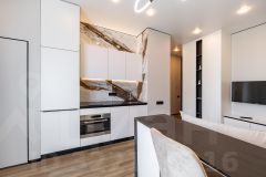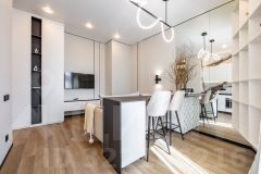 Современная планировка: кухня-гостиная; спальня с гардеробной и входом в санузел,санузел с душем и ванной