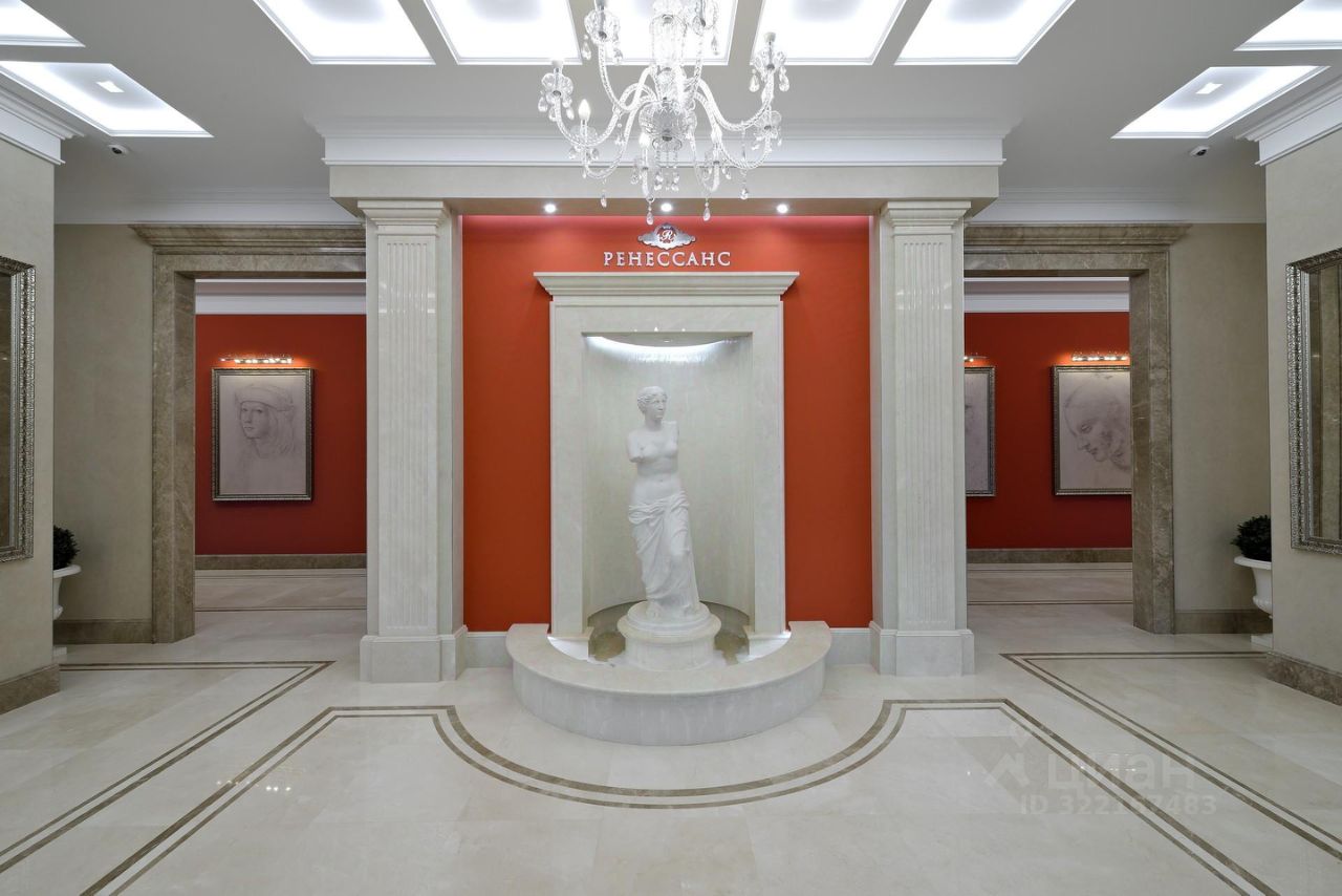 Роскошный интерьер лобби: натуральный испанский мрамор, вертикальный фонтан, репродукции картин эпохи Возрождения, великолепная итальянская люстра ручной работы с подвесками из хрусталя CutCrystal и муранского стекла, иранские ковры и дизайнерская мебель. Лифты премиум-класса ThyssenKrupp.