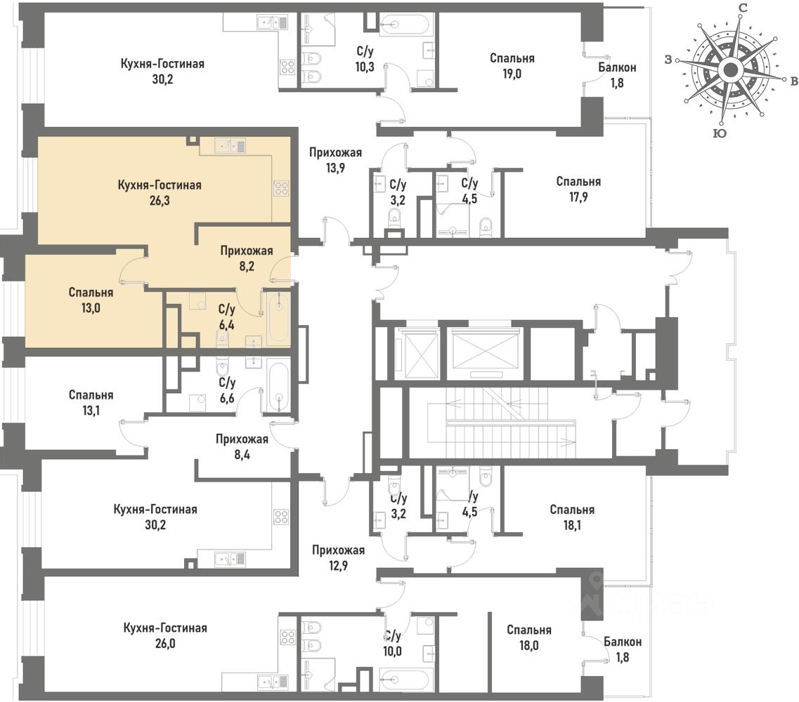 Развитая собственная инфраструктура: подземный паркинг, здание фитнес-центра с бассейнами, объекты торговли и сферы услуг.