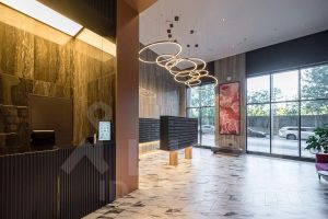 Лифты с этажа спускаются на подземный паркинг, есть консьерж, видеонаблюдение и охрана по всей территории.