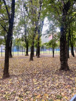 Во дворе всегда есть машино место . Двор ухоженный, тихий , утопает в зелени . Много спортивных и детских площадок .