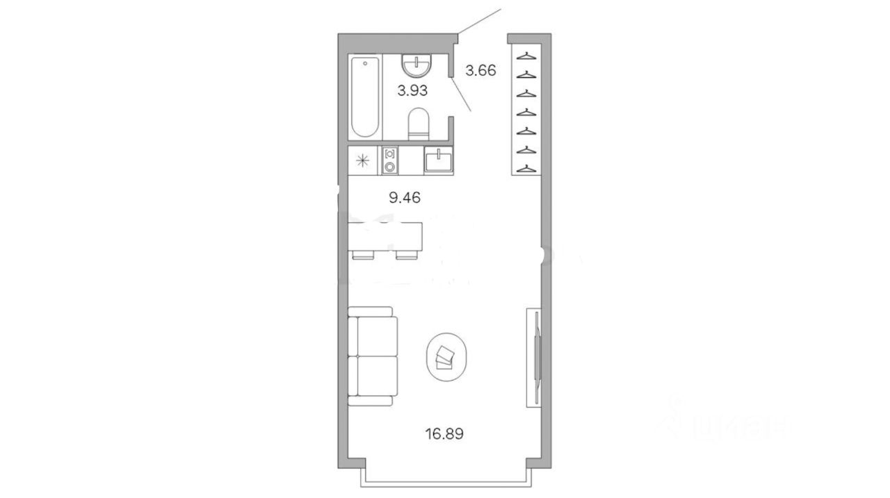 В квартире: — отделка премиум от Застройщика — высокие потолки 3,05 м — панорамные окна — спальня 16,89 м² — кухня-ниша 9,46 м² — санузел 3,93 м² — прихожая 3,66 м² — центральная система кондиционирования и вентиляции.