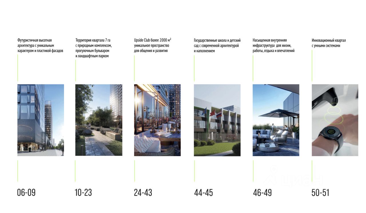 На территории ЖК продумано много полезных и функциональных зон и сервисов. Зеленая территория с ландшафтным парком 2,5 га, сенсорным садом для детей и спортивными зонами. Также в рамках ЖК создается образовательный кластер: государственная школа с лабораториями и IT-полигоном и государственный детский сад.