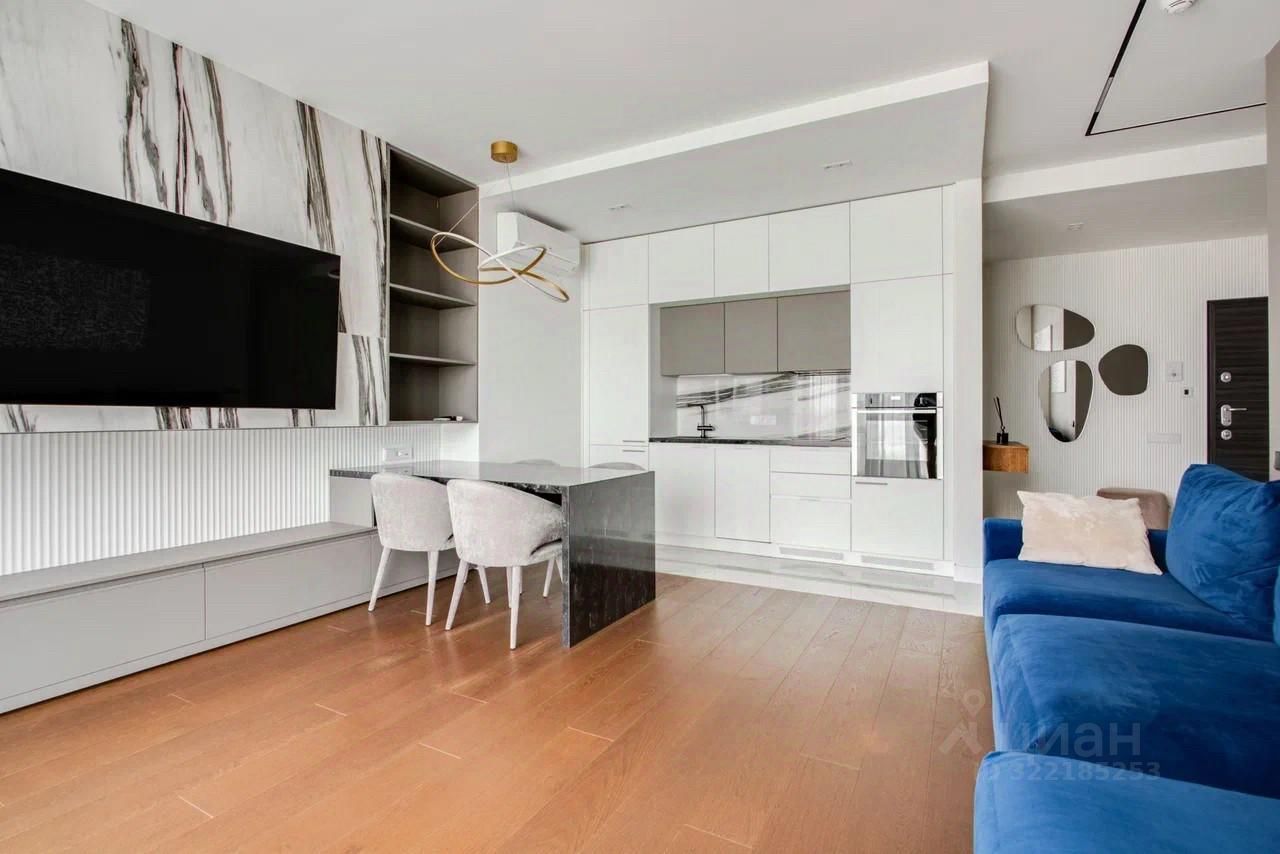 Предлагаем вашему вниманию просторные апартаменты в современном жилом комплексе на Ленинградском проспекте. Общая площадь составляет 80 кв. м, расположены на 18-м этаже 25-этажного монолитного дома, построенного в 2020 году. Высокие потолки 3.2 метра и панорамные окна с видом на улицу создают ощущение простора и света. В квартире 3 комнаты и 2 совмещенных санузла.