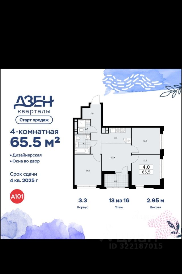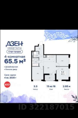 Продаётся просторная четырехкомнатная квартира площадью 65.7 квадратных метров, расположенная на девятом этаже современного монолитного дома в Москве, по адресу: 160 квартал, 1в к4.