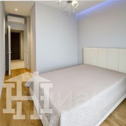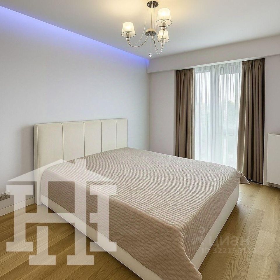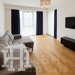 Апартамент оформлен в современном стиле с использованием натуральных оттенков и качественных материалов.